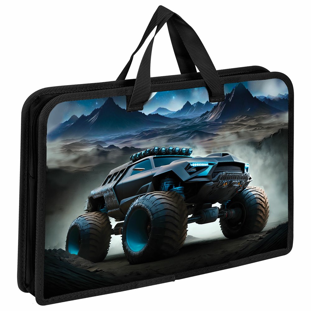 Папка на молнии с ручками ЮНЛАНДИЯ А4, 1 отделение, пластик, ширина 45 мм, "Space driver", 273360
