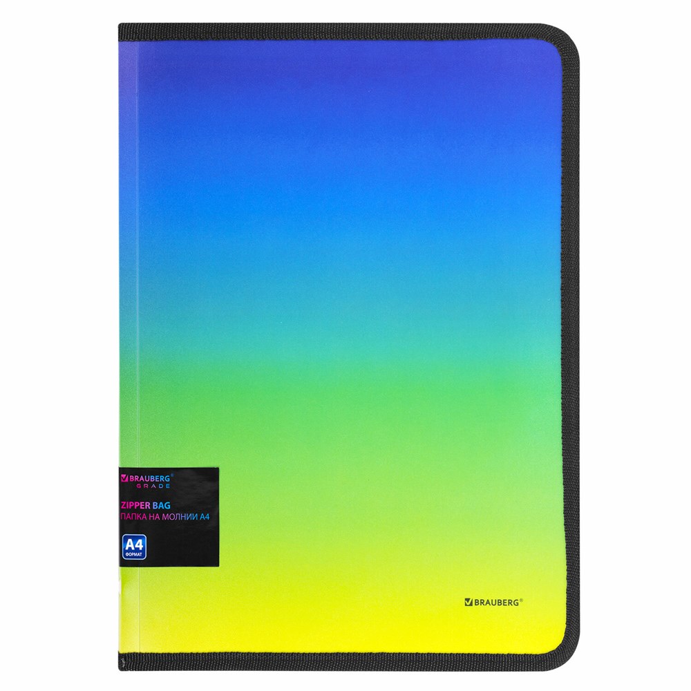 Папка объемная на молнии пластиковая BRAUBERG GRADE, А4, 330х240мм, 600мкм, зелено-голубой градиент, 271974