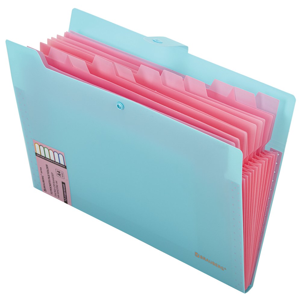 Папка-органайзер на кнопке 12 отделений, BRAUBERG "Extra", А4, голубая с розовым, 271932
