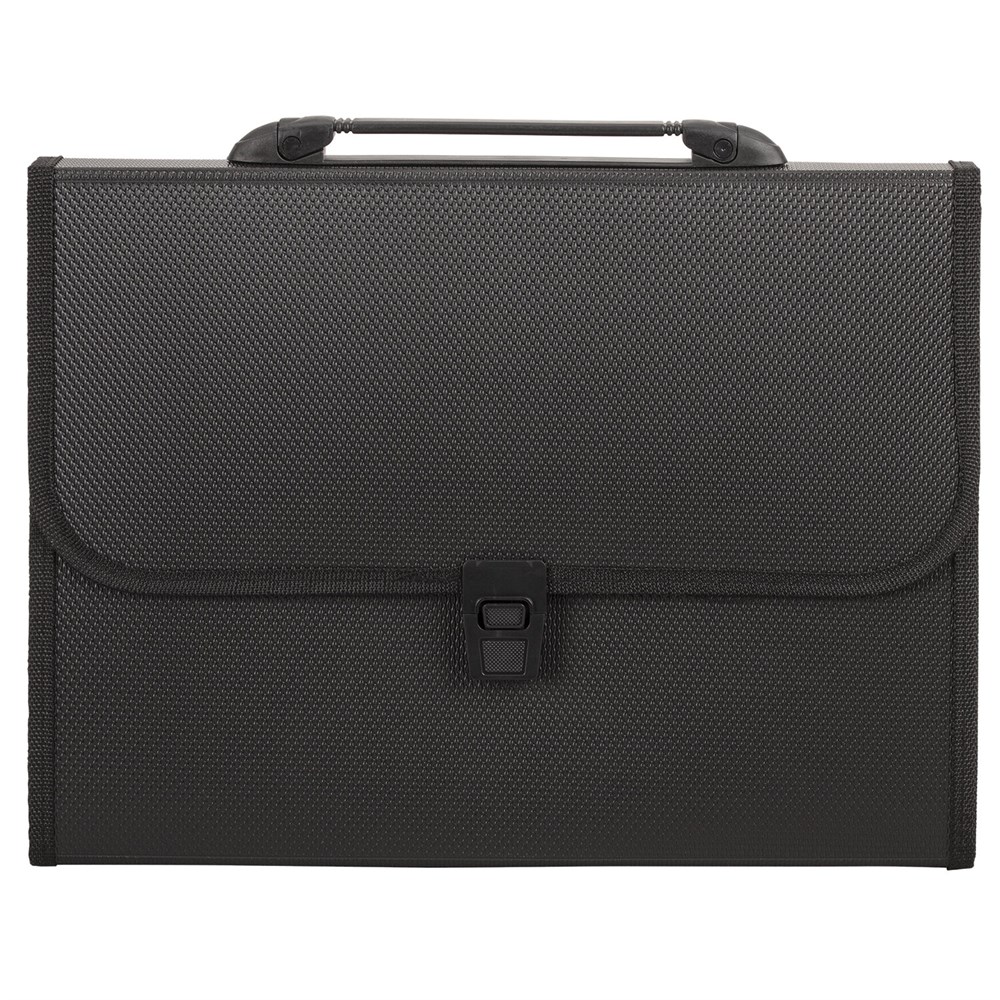 Папка-портфель пластиковая STAFF А4 (330х235х50 мм), 7 отделений, с окантовкой, индексные ярлыки, черный, 221206
