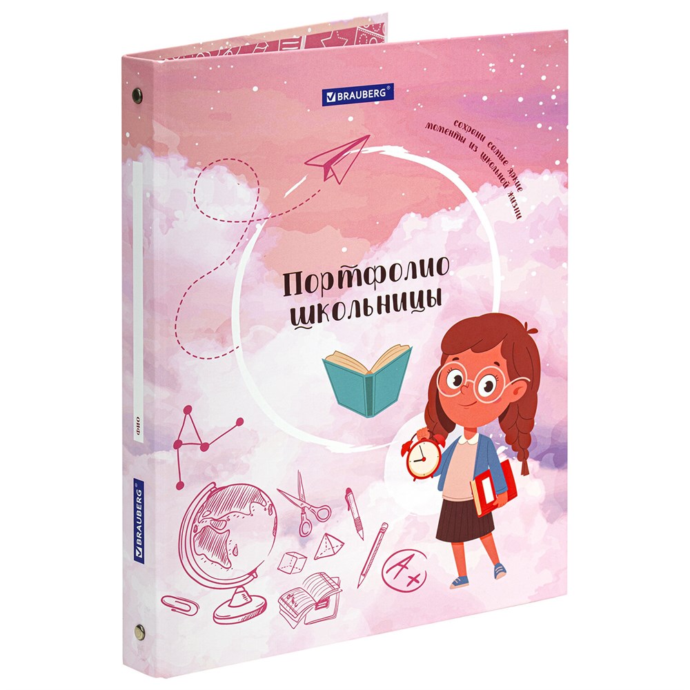 Папка-портфолио школьника "ОТЛИЧНИЦА", 4 кольца, 20 файлов, 10 вкладышей, 7БЦ матовая, BRAUBERG, 115239