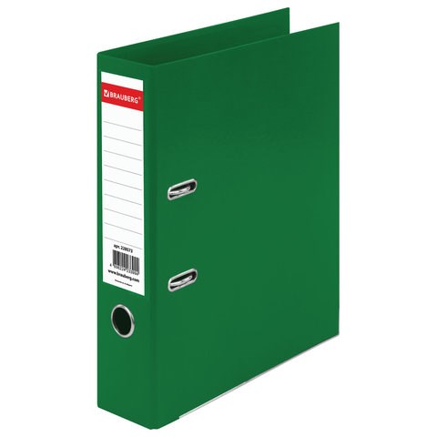 Папка-регистратор BRAUBERG "EXTRA", 75 мм, зеленая, двустороннее покрытие пластик, металлический уголок, 228573