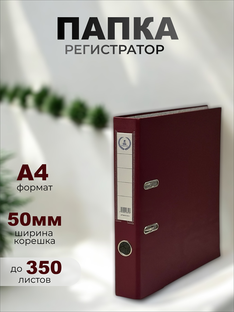 Папка-регистратор Консул ПВХ, 50 мм, металлический уголок, кармашек со сменной этикеткой. Цвет: бордовый