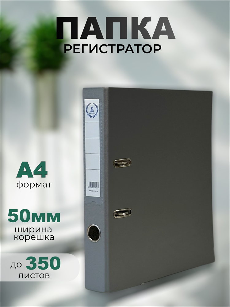 Папка-регистратор Консул ПВХ, 50 мм, металлический уголок, кармашек со сменной этикеткой. Цвет: серый