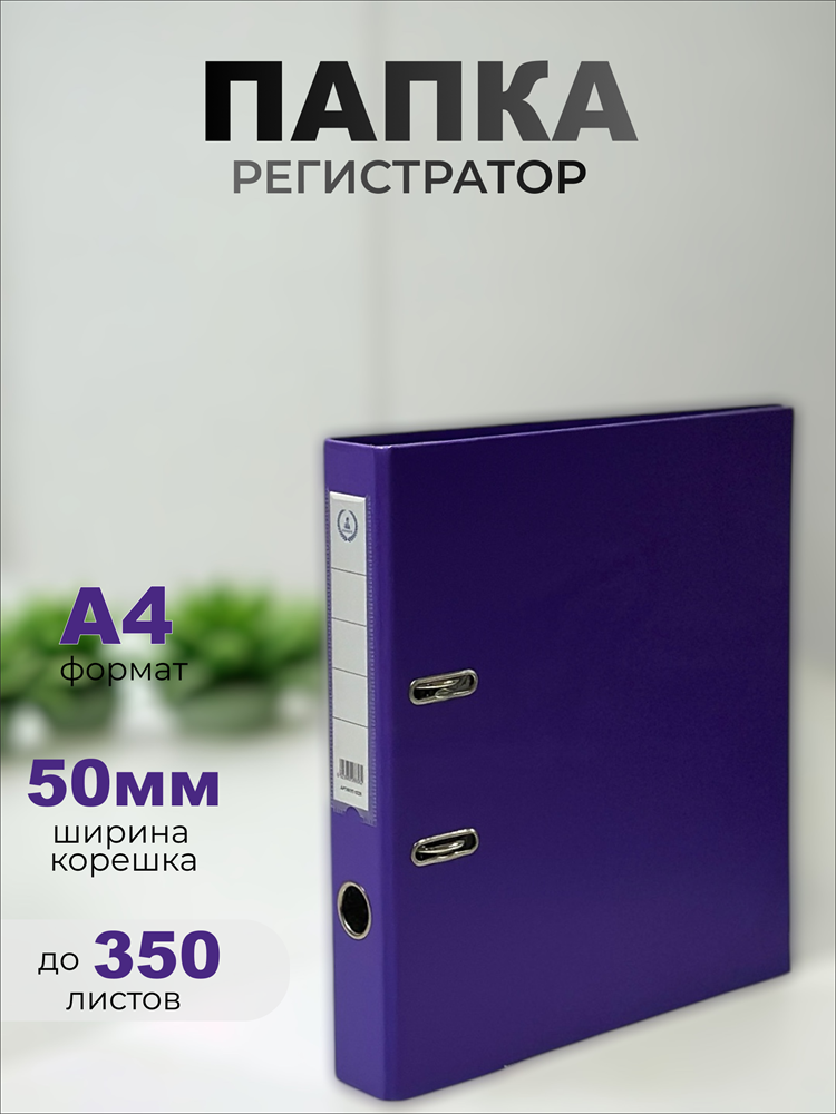 Папка-регистратор Консул ПВХ, 50 мм, металлический уголок, кармашек со сменной этикеткой. Цвет: фиолетовый