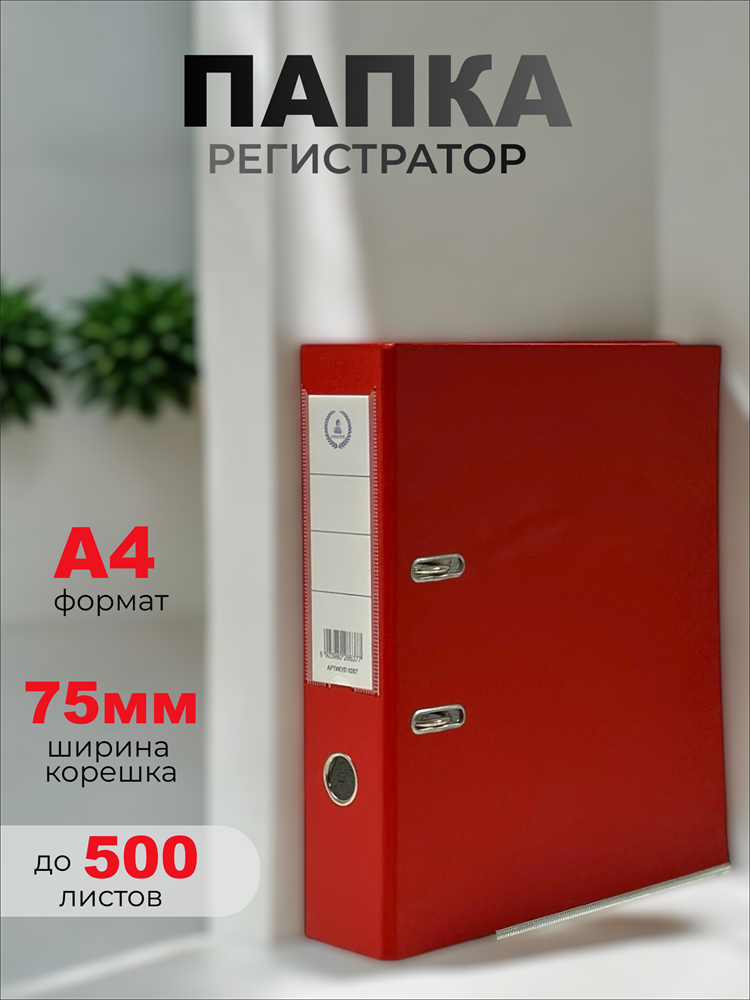 Папка-регистратор Консул ПВХ, 75 мм, металлический уголок, кармашек со сменной этикеткой. Цвет: красный