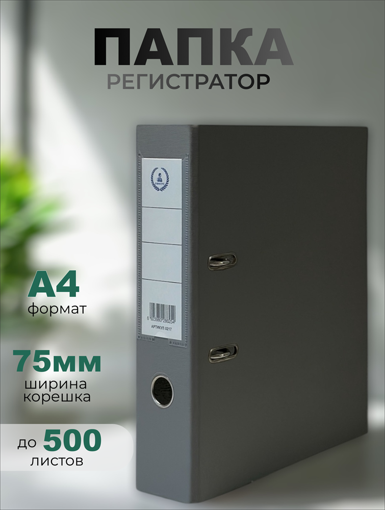Папка-регистратор Консул ПВХ, 75 мм, металлический уголок, кармашек со сменной этикеткой. Цвет: серый