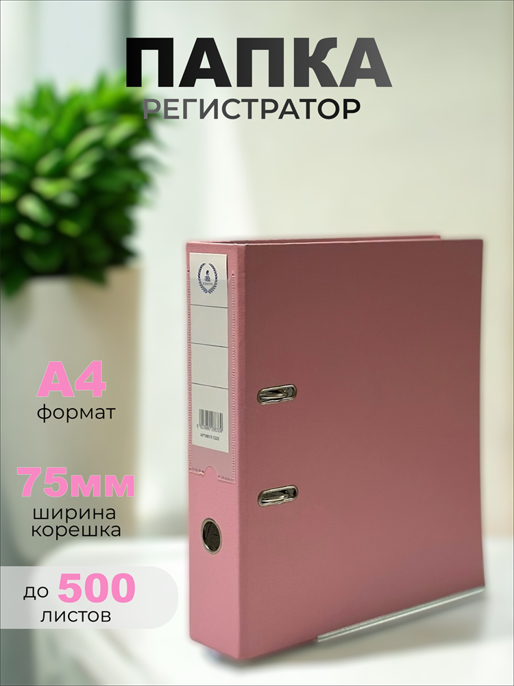 Папка-регистратор Консул ПВХ, 75 мм, металлический уголок, кармашек со сменной этикеткой. Цвет: светло-розовый