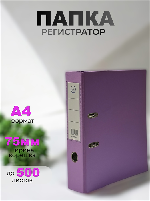 Папка-регистратор Консул ПВХ, 75 мм, металлический уголок, кармашек со сменной этикеткой. Цвет: светло-сиреневый