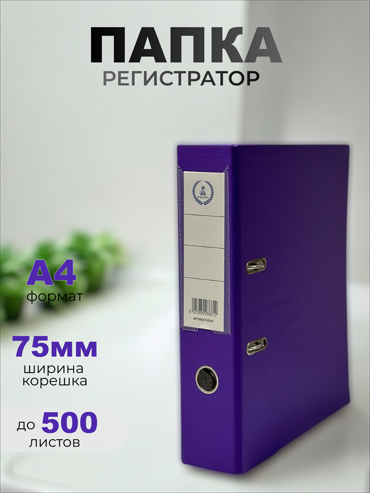 Папка-регистратор Консул ПВХ, 75 мм, металлический уголок, кармашек со сменной этикеткой. Цвет: темно-фиолетовый
