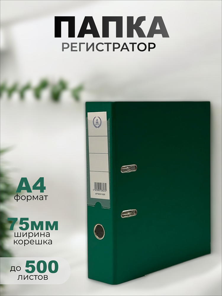 Папка-регистратор Консул ПВХ, 75 мм, металлический уголок, кармашек со сменной этикеткой. Цвет: зеленый
