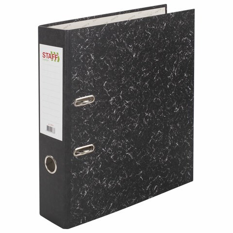 Папка-регистратор STAFF ЭКОНОМ, с мраморным покрытием, 70 мм, без уголка, черный корешок,