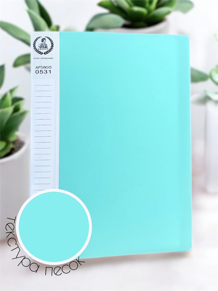 Папка с 30 прозрачными вкладышами "Консул", А4, пластик 0,6мм Цвет: пастель мятный