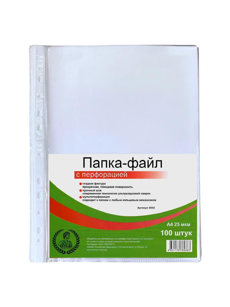 Папка-файл А4 "Консул" 25 мкм перфорированный комплект 100 шт гладкие, ВЫСОКОЕ КАЧЕСТВО