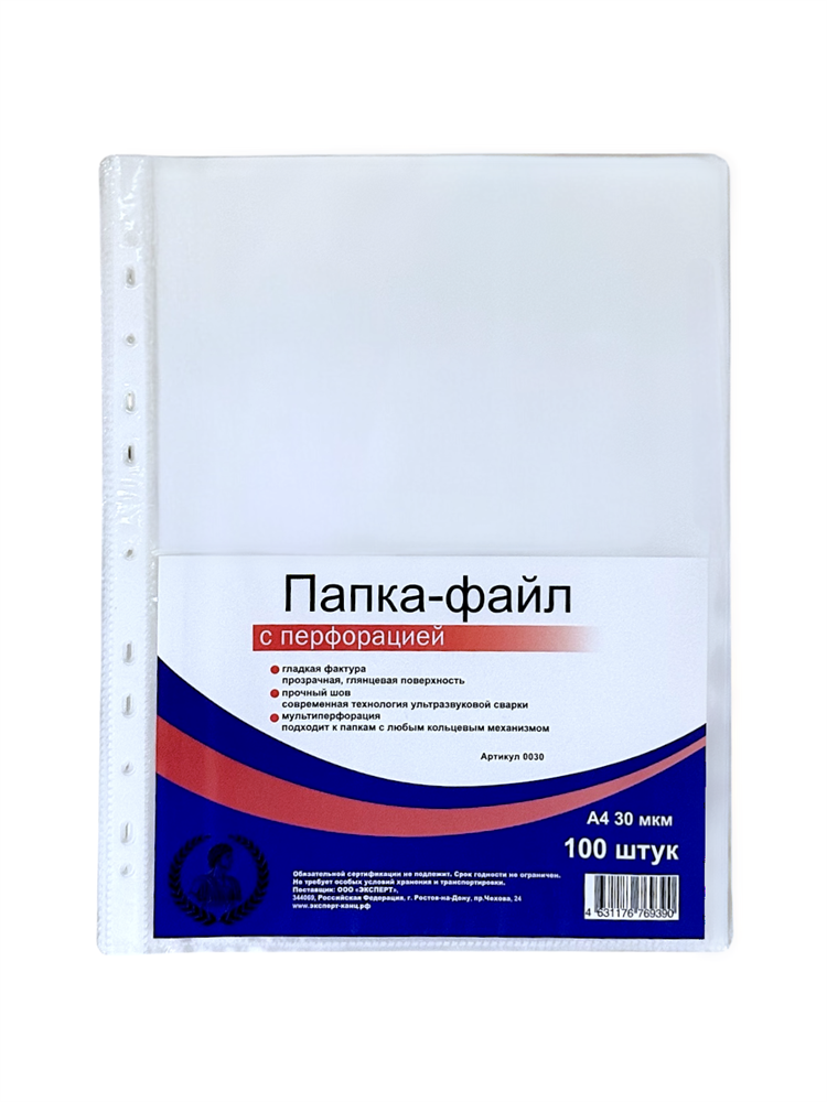 Папка-файл А4 "Консул" 30 мкм перфорированный комплект 100 шт гладкие, ВЫСОКОЕ КАЧЕСТВО