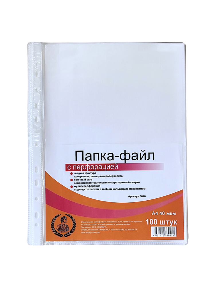 Папка-файл А4 "Консул" 40 мкм перфорированный комплект 100 шт гладкие, ВЫСОКОЕ КАЧЕСТВО