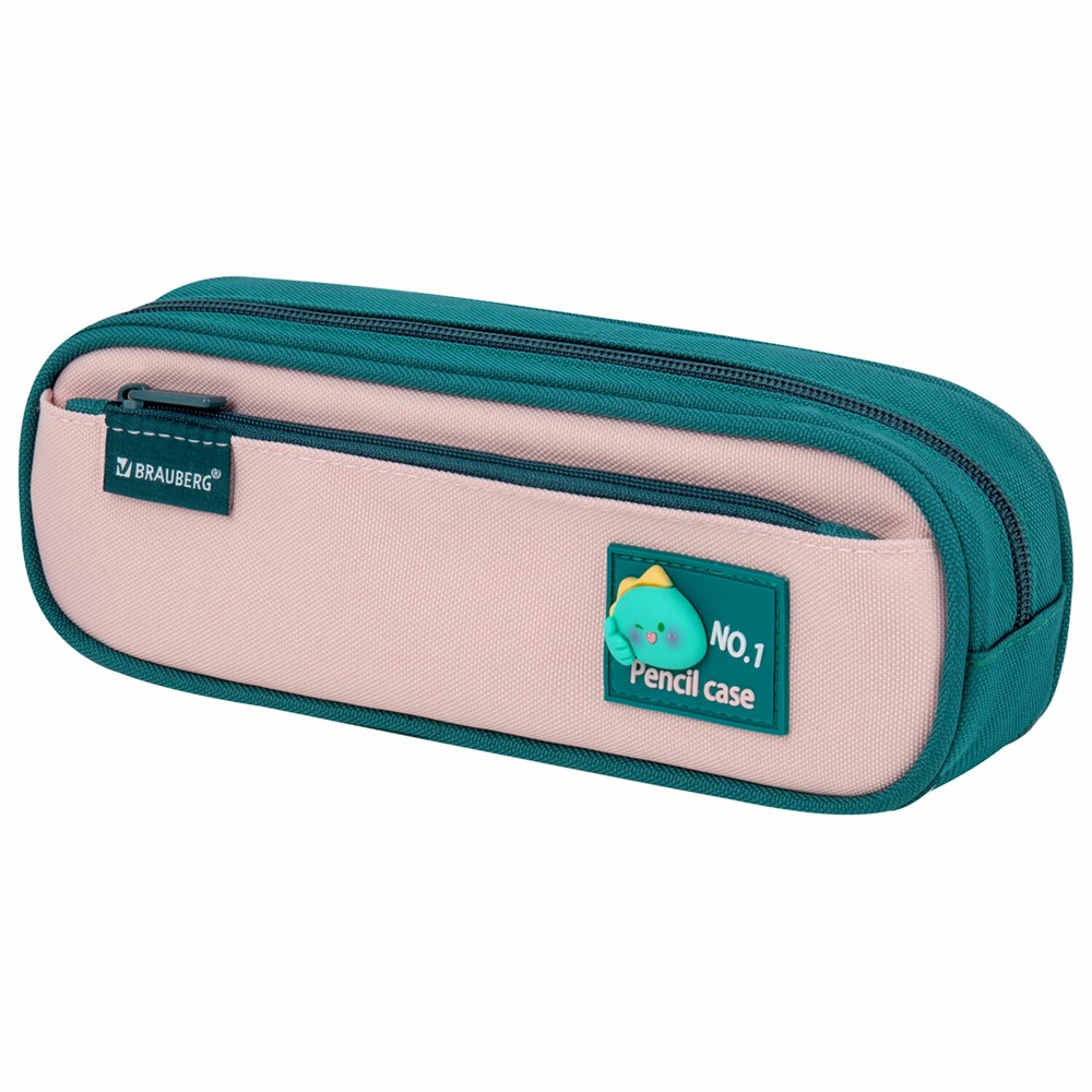 Пенал-футляр BRAUBERG, 2 отделения, 3D-элемент, полиэстер, "Fun dino", 23х8х5 см, 273572