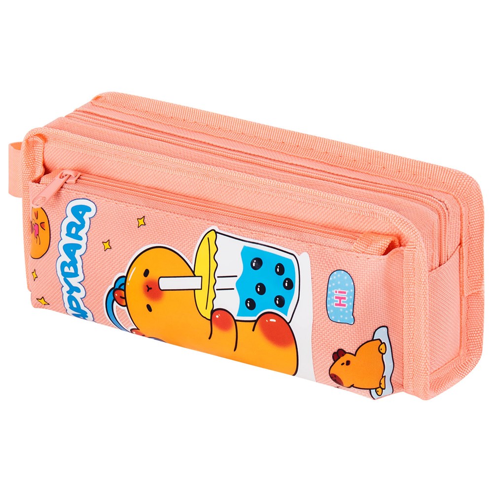 Пенал ЮНЛАНДИЯ ЮНИОР, 2 отделения, с ручкой, полиэстер, "Capybara", 21х8х6 см, 273814