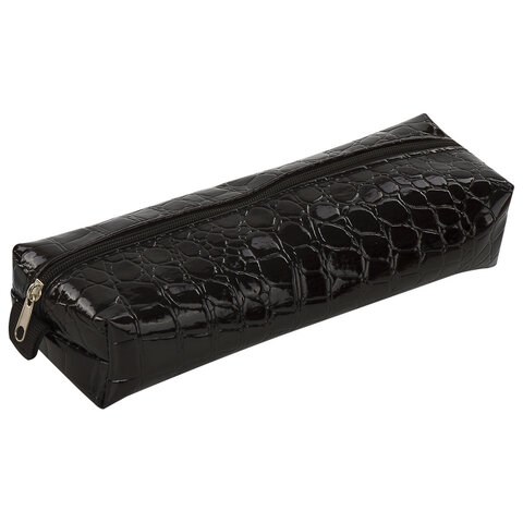 Пенал-косметичка BRAUBERG "Ultra black", "крокодиловая кожа", 20х6х4 см, 223909