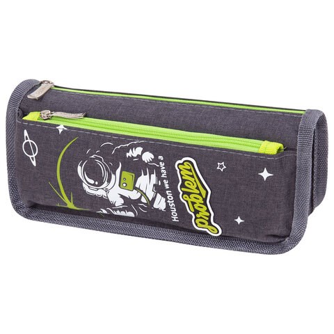 Пенал мягкий ЮНЛАНДИЯ, 2 отделения, полиэстер, "Cosmonaut", серый, 21х6х9 см, 270275