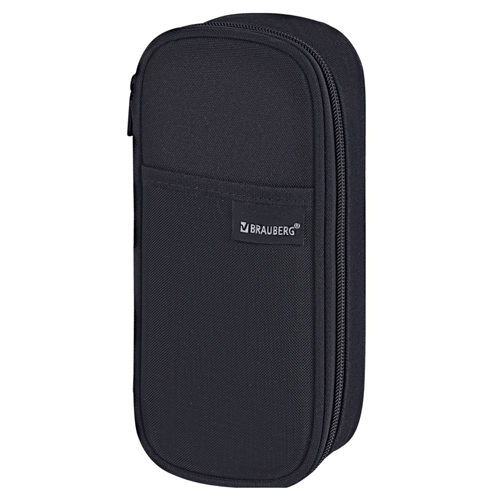 Пенал-органайзер BRAUBERG, 1 отделение, откидная планка, полиэстер, 22х10х6 см, "Total black", 273577