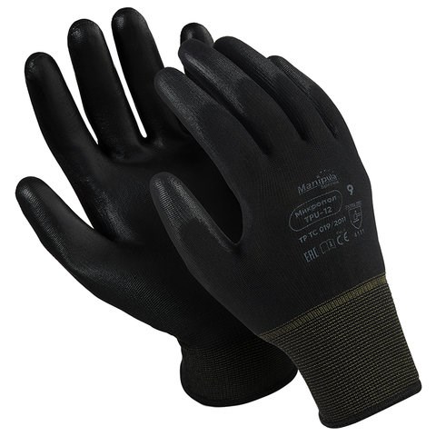 Перчатки нейлоновые MANIPULA "Микропол", полиуретановое покрытие (облив), размер 10 (XL), черные, TP