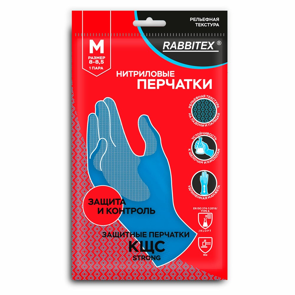 Перчатки нитриловые КЩС, STRONG, химически устойчивые, синие, размер 8-8,5, M (средний), RABBITEX (РАББИТЕКС), 700907