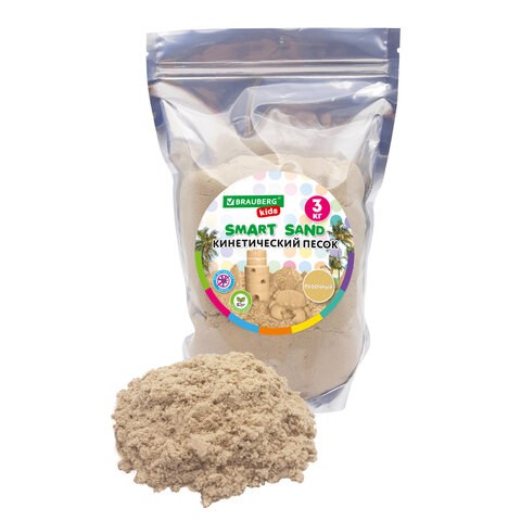 Песок для лепки кинетический, цвет песочный, 3000г, пакет, BRAUBERG KIDS, 666003