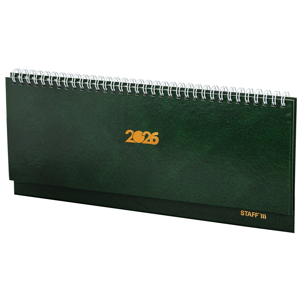 Планинг датированный 2026 300х130 мм, STAFF, гребень, обложка бумвинил, 64 л., зеленый, 117361