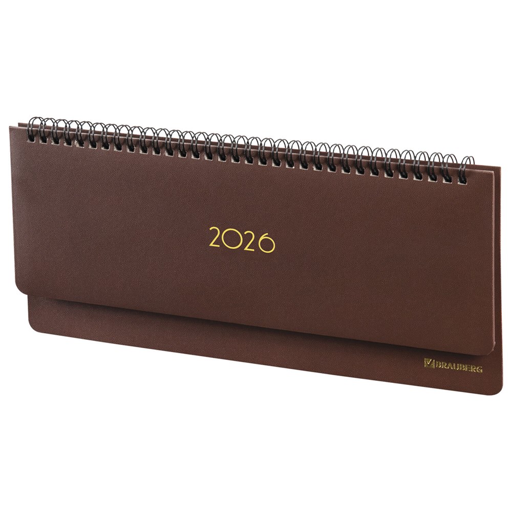 Планинг датированный 2026 305х140 мм BRAUBERG "Select", под кожу, коричневый, 117233