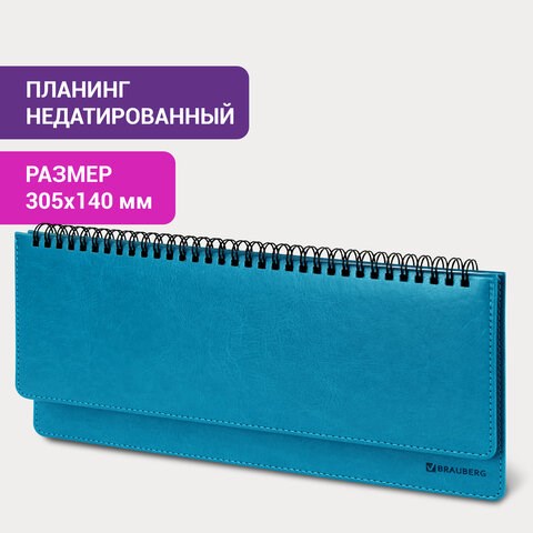 Планинг настольный недатированный (305x140 мм) BRAUBERG "Rainbow", кожзам, 60 л., бирюзовый, 111700