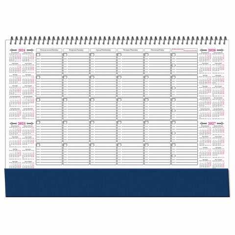 )Планинг-ежемесячник настольный недатированный предназначен для ведения записей. На каждом листе – графы для всех дней текущего месяца, календарная сетка на четыре года и поле для заметок. Подложка выполнена из плотного картона.
