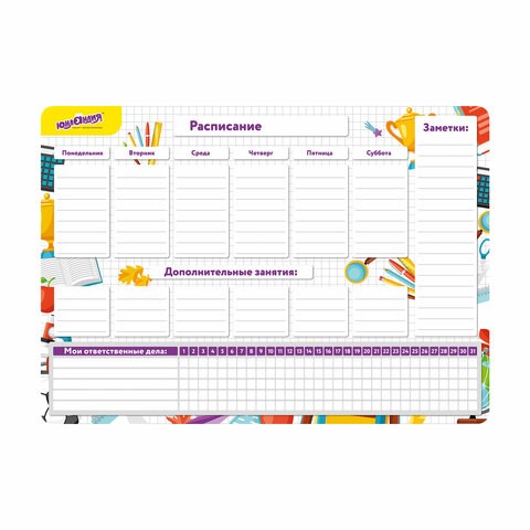 )Магнитный планинг-трекер ЮНЛАНДИЯ - полезный подарок и незаменимый помощник в учебе и развитии детей. Планинг позволит школьнику эффективно планировать свое время на предстоящую неделю, а его родителям ненавязчиво контролировать этот процесс.