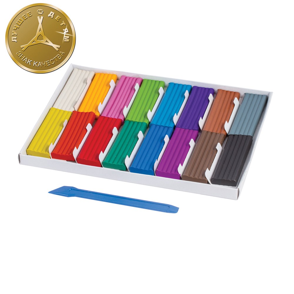 Пластилин классический ЮНЛАНДИЯ "ВЕСЁЛЫЙ ШМЕЛЬ", 16 цветов, 240 г, СО СТЕКОМ, 104810