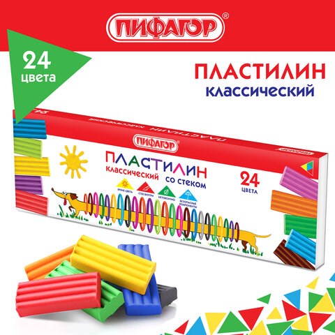 Пластилин классический ПИФАГОР "Веселая такса", 24 цвета, 360 г, СО СТЕКОМ, 106676