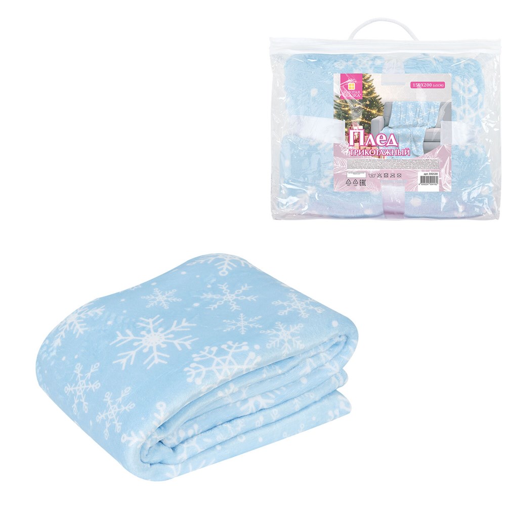 Плед выполнен из полиэстера. Его поверхность украшена нежными снежинками, которые создают ощущение зимней сказки. Лёгкий голубой фон добавляет свежести и воздушности, а белые снежинки придают ему праздничный блеск. Такой плед не только согреет вас физически, но и подарит эмоциональное тепло, напоминая о предстоящих новогодних чудесах.