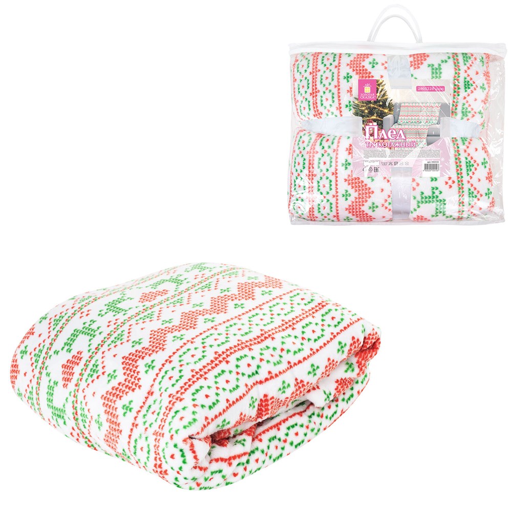 Плед новогодний 200х220 см, "Вязаный", полиэстер, 210 г/м2, ЗОЛОТАЯ СКАЗКА, 592533