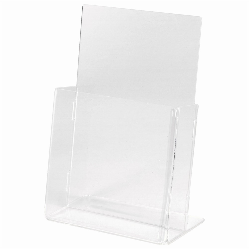 Вертикальная настольная подставка STAFF с высоким бортом. Вмещает по несколько листовок и буклетов одновременно. Подходит для рекламных материалов формата 1/3 А4.Изготовлена из прозрачного акрилового стекла. Предназначена для настольного размещения. Упакована в полиэтилен.