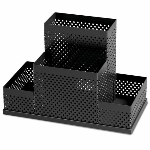 Подставка-органайзер BRAUBERG "Germanium", 4 секции, 160х80х110 мм, черная, металл, 237982