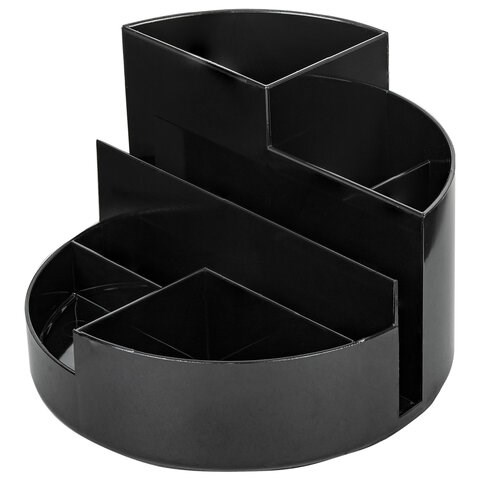 Подставка-органайзер BRAUBERG ROUND, 6 отделений, 130х130х90 мм, черная, 238100, ОР05
