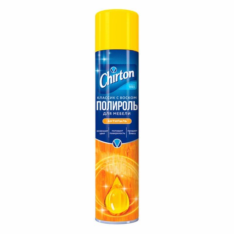 Полироль для мебели CHIRTON (Чиртон) антипыль 300мл, "Классик с воском", аэрозоль