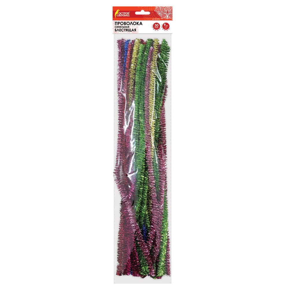 Пушистая проволока ОСТРОВ СОКРОВИЩ - незаменимый материал для поделок. Проволока может использоваться в самых разных техниках рукоделия. Она универсальна и проста в использовании.Блестящая, прочная, гибкая, в то же время она прекрасно держит форму и не ломается, хорошо режется ножницами. Изготовлена из двух материалов: полиэстера и металлической проволоки. Выполнена в 6 блестящих цветах. Размер - 0,9х30 см. Поставляется в пакете с европодвесом в количестве 30 штук.