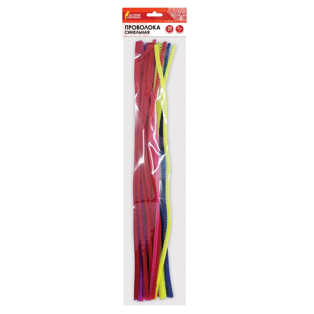 Проволока синельная для творчества "Пушистая", 6 цв., 30 шт., 0,3х30 см, ОСТРОВ СОКРОВИЩ, 661520