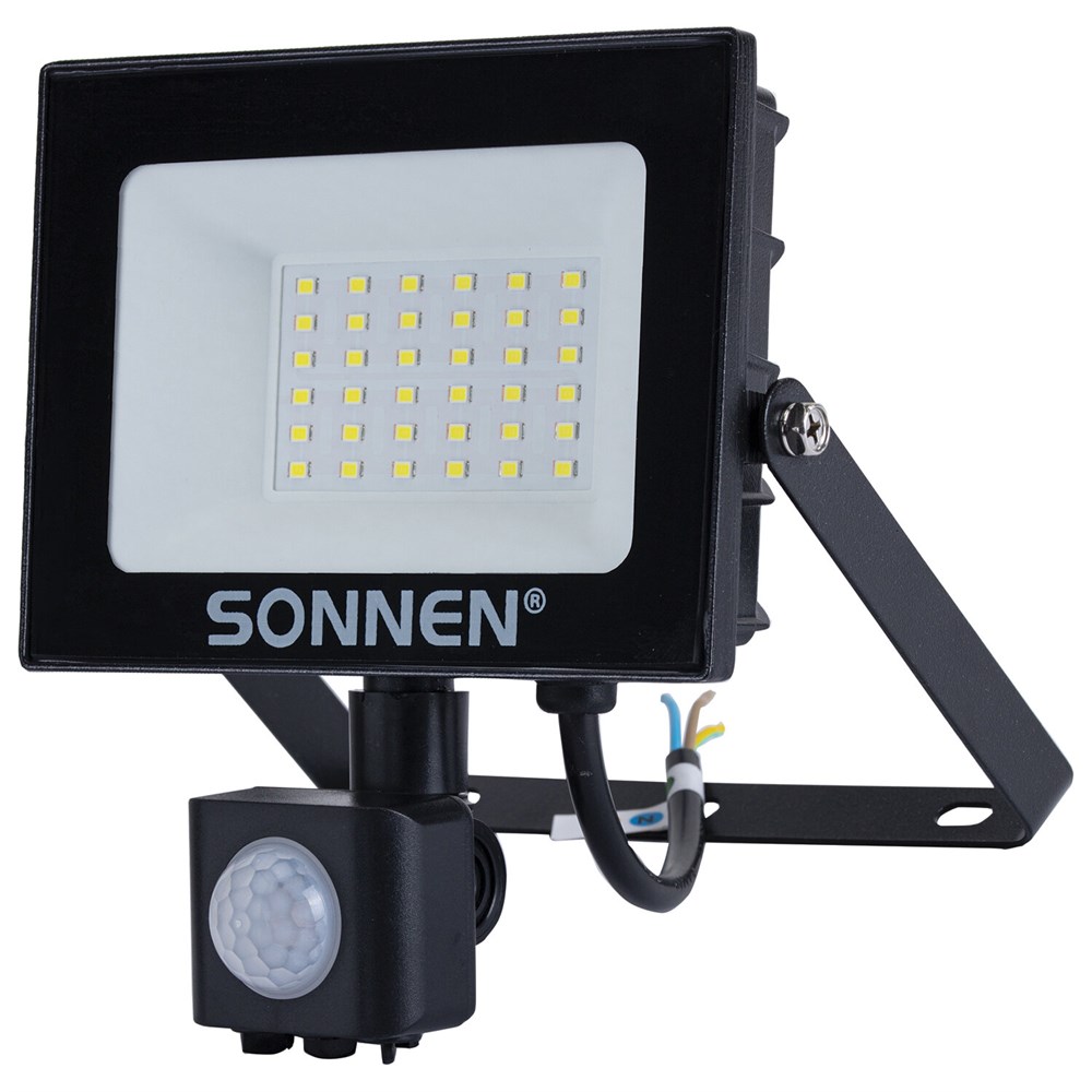 Прожектор светодиодный с датчиком движения 30 Вт, 6500 К, 2400 Лм, 30 м2, IP65, 161х146х51 мм, черный, SONNEN, 238417