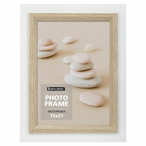 Рамка 15х21 см небьющаяся, багет 35 мм, МДФ, BRAUBERG "Esquire", белая/капучино, 391255