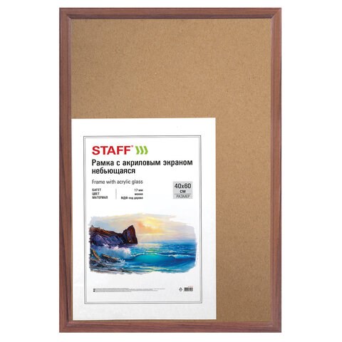 Рамка НЕБЬЮЩАЯСЯ 40х60 см, МДФ под дерево, багет 17 мм, мокко, акриловый экран, STAFF "Carven", 391223