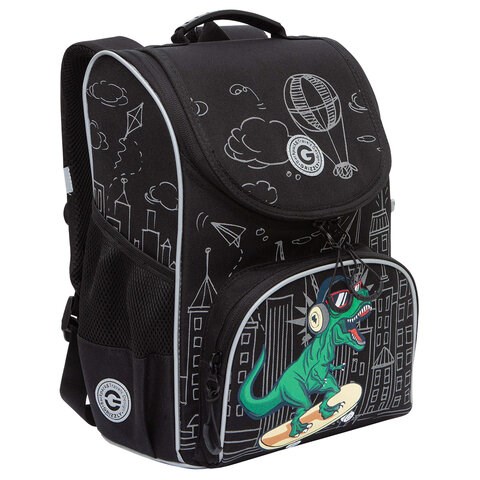 Ранец GRIZZLY анатомическая спинка, с мешком для обуви, для мальчиков, DINO RACE, 33х25х13 см, RAm-485-1/1