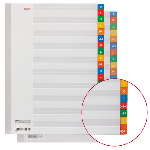 Разделитель картонный А4, 20 листов, алфавитный А-Я, 225?297 мм, HATBER, 4AR 12005