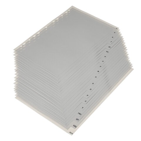 Разделитель пластиковый BRAUBERG, А4, 20 листов, алфавитный А-Я, оглавление, серый, РОССИЯ, 225601