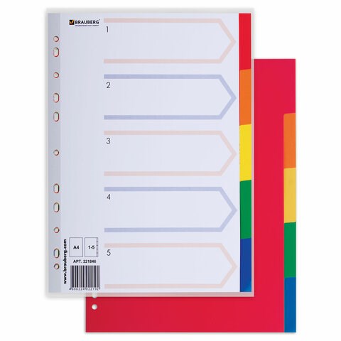 )Пластиковые разделители BRAUBERG предназначены для систематизации документов внутри папок формата А4.
